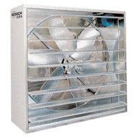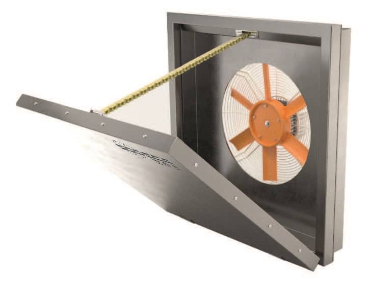 Väggmonterad axialfläkt för bl.a lantbruk med stora luftvolymer och låga varvtal. Automatiskt spjäll.