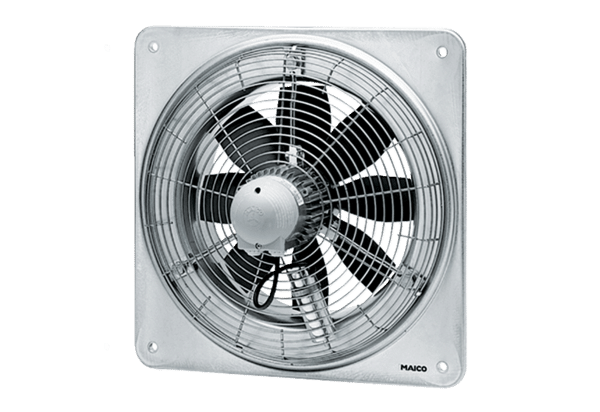 Väggfläkt för utsug och ventilation från industrilokaler, stall m.m Skyddsklass IP55 (undantag 230V 1f stl 45-63 IP54) isolationsklass F. Finns i specialversion för kylsystem, kondensatorer, aerosolgeneratorer m.m. motor för låga temperaturer -40°C