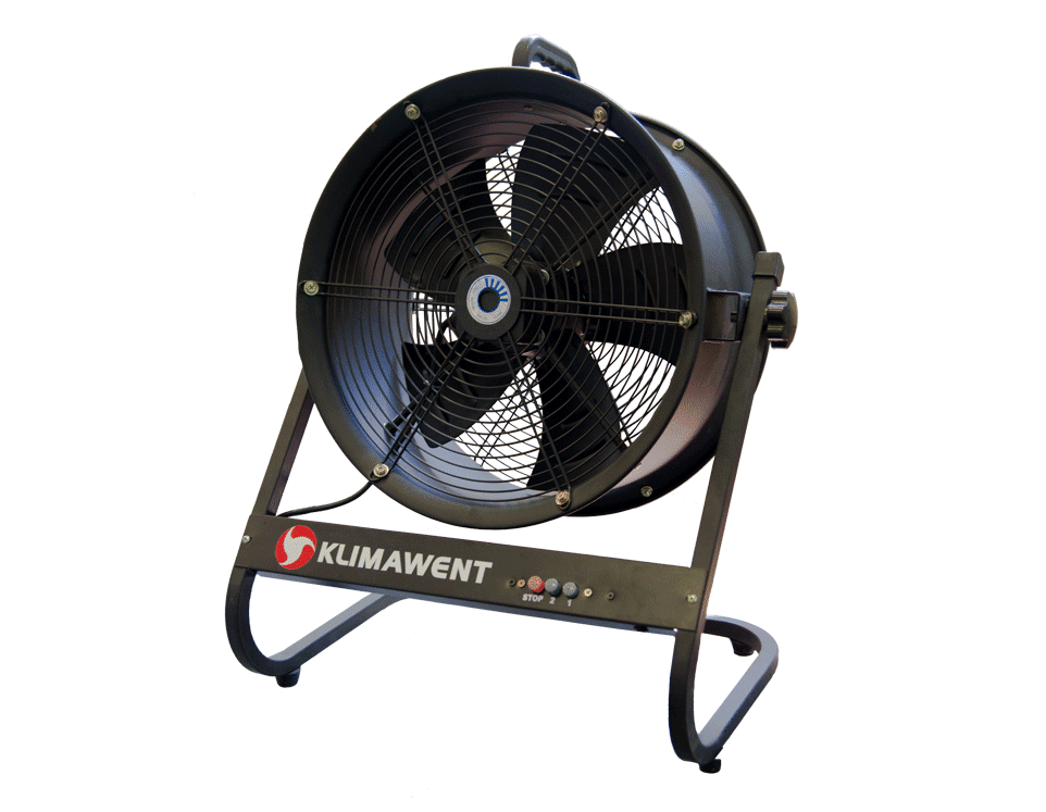 För punktkylning, torkning eller utsug. Frontpanel med hastighetsval i 2 steg.Med stativ,skyddsgaller på båda sidor och strömkabel på 1,5m med kontakt.