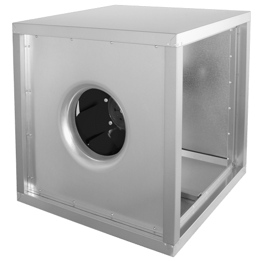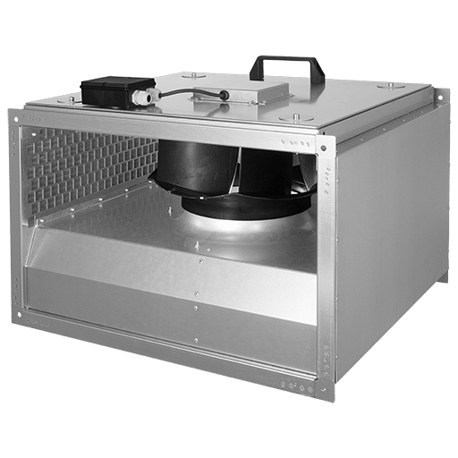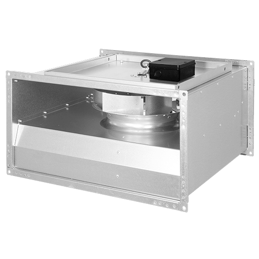 Kanalfläkt med inspektionslucka anpassad för montage i rektangulära ventilationskanaler. Med bakåtböjda skovlar B-hjul och reglerbara.