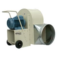 Portabel fläkt FAST -P för evakuering av förorenad/dammig luft ifrån tillverkningsprocess av papper/trä/läder/tyg och plastindustri. Direktdriven motor med motorskydds-brytare, 1f 230V. Skyddsklass IP54.