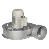 Radialfläkt för utsug ifrån bageriugnar och ytbehandling. Max +80°C och både fläkthölje och fläkthjul i rostfritt stål. Anslutning mot Ø160mm.