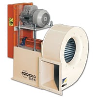 Radialfläkt för materialtransport eller utsug av sot/damm. Fläkthjul med raka skovlar och kan arbeta med medietemp. upp till +120°C. Små storlekar.